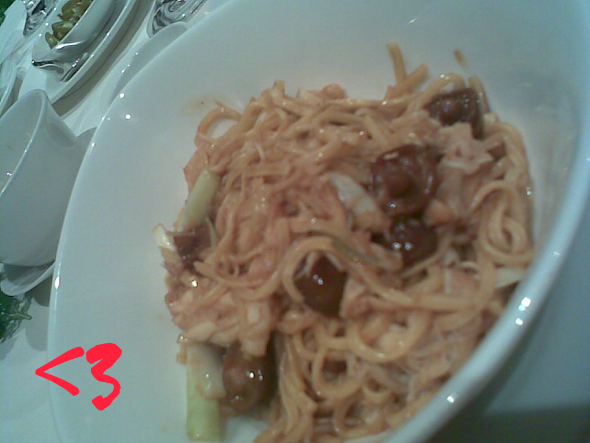 Steamed Ee Fu Noodles with Crab Meat & Chives. the noodles from hong kong want leh. cool